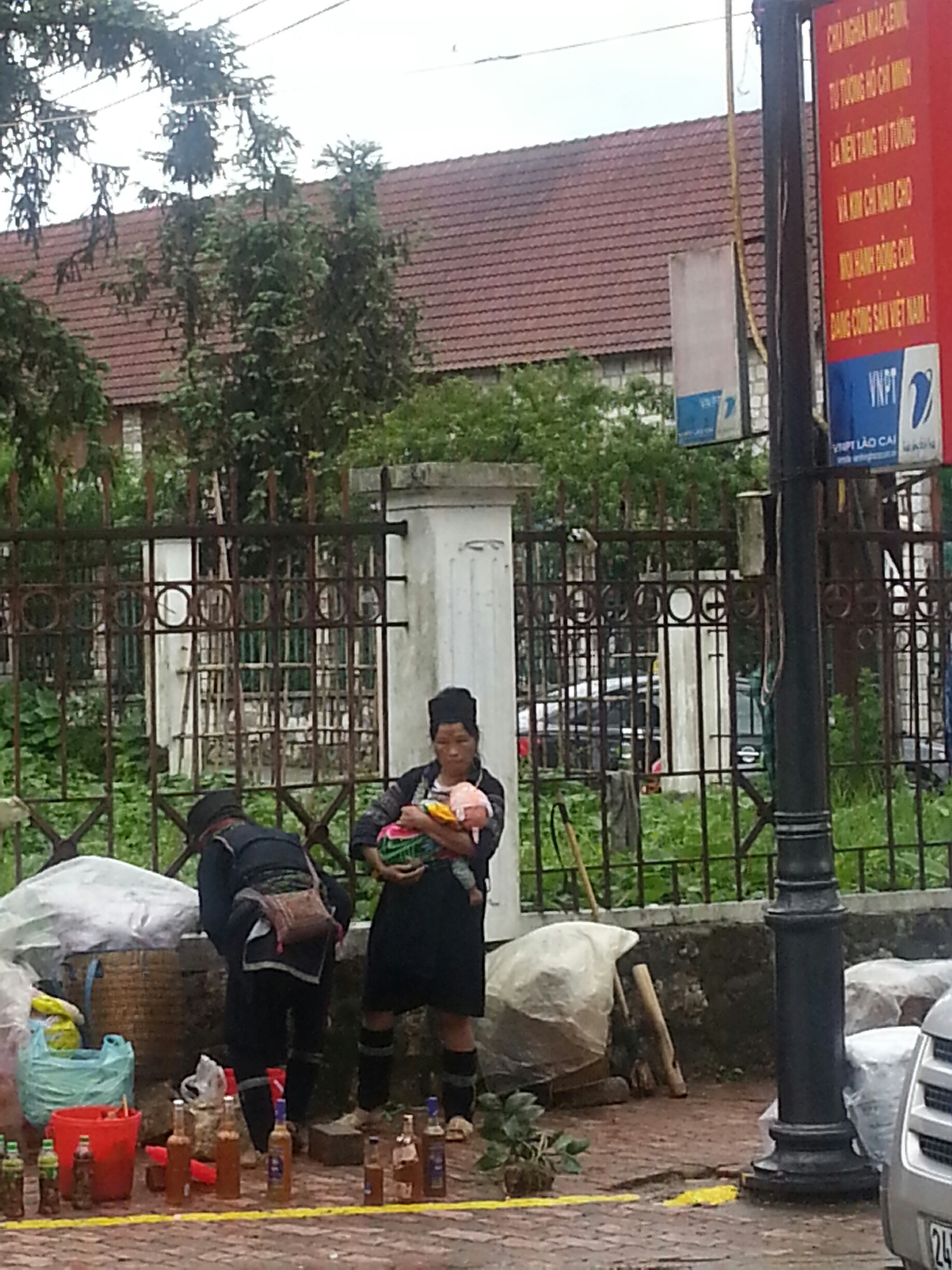 沙巴是越南老街省苗族(赫蒙族)最集中的縣之一,主要是黑衣苗族(Hmongb Dlob),有1.47萬(wàn)人,占全縣總?cè)丝诘?1%。圖為她們?cè)诼愤叧鍪圩援a(chǎn)峰蜜等土特產(chǎn)