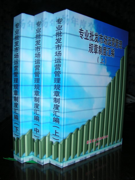 《專業(yè)批發(fā)市場運營管理規(guī)章制度匯編》約120余萬字,分電子書、紙介質兩種形式發(fā)行。紙質規(guī)格:16開,近1300頁;電子書,光盤。浙江(義烏)商成專業(yè)市場研究所總發(fā)行 電話 0579 85099786發(fā)行QQ1615472898