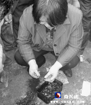 經(jīng)營戶數(shù)著錢罐里被燒毀的錢幣,欲哭無淚。