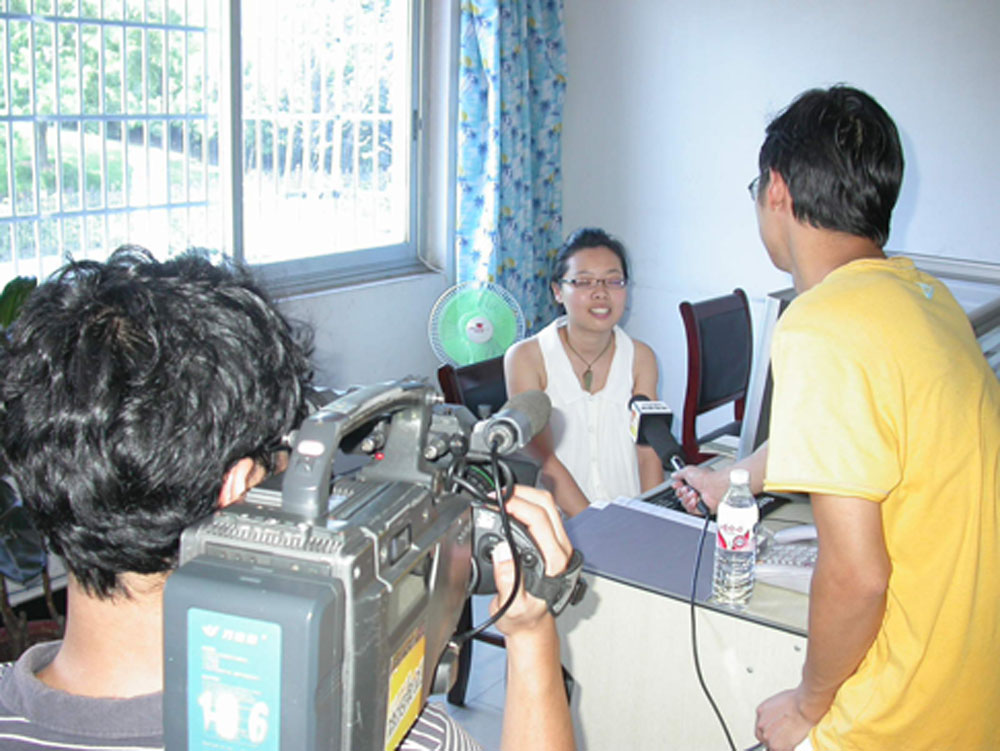圖為見習(xí)生劉珊珊接受釆訪。