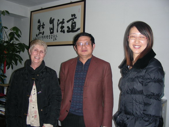 許慶軍先生和英國《金融時報》記者Patti Waldmeir與其助理、新聞研究員陳莎莎合影